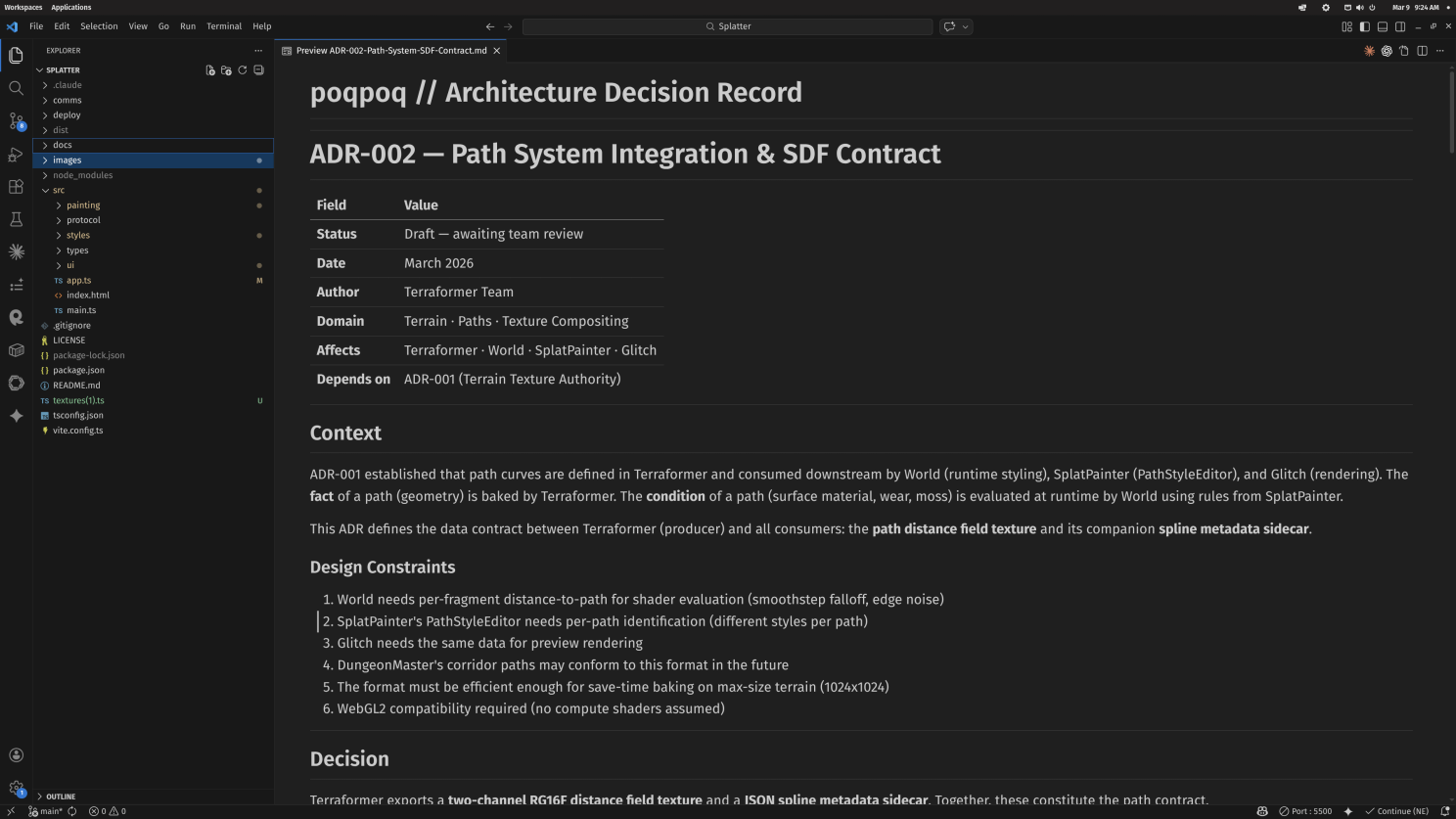 These days I co-develop applications with Claude Code on nights and weekends. I find it genuinely therapeutic. Last weekend I was working on a solution for splat-blending paths and roads for 3D terrains — something I was proud of, because I’d come to understand why these functions should be rolled into something procedural. But I quickly realized I’d delivered multiple ADRs (Architecture Decision Records) and technical specs while completely neglecting to define the parts that felt most obvious to me: the human interface. Later in the session, an AI instance encouraged me to simply make changes in the raw code to view different parameter impacts. From its frame, that was entirely reasonable. From mine — why did it produce all this brilliant engineering and completely disregard the need for a human to actually use it?